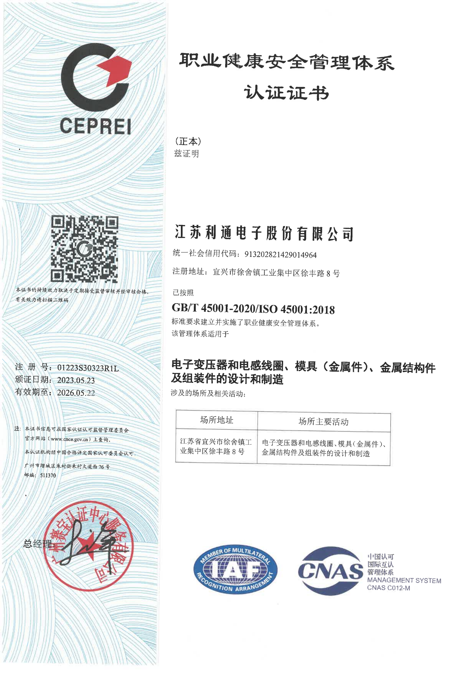 江苏亚星官网-ISO 45001 23.5.23-26.5.22